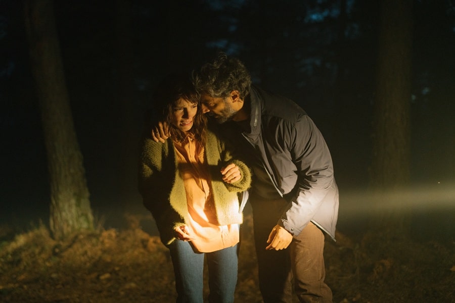 David Victori apuesta por una puesta en escena sobria y atmosférica. El bosque no es solo un escenario, sino un personaje más, opresivo, imprevisible, cambiante. La cámara se mueve con nervio en los momentos de peligro, pero también sabe detenerse en los rostros, en los silencios incómodos y en las miradas cargadas de sospecha.